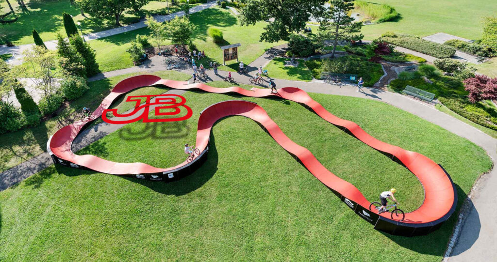 Parallèlement au projet de Bike Park, un pumptrack mobile est mis à disposition par la fondation. Les écoles, les communes, les entreprises ou toutes autres institutions peuvent le réserver en ligne. En voyageant d’une localité à une autre, le pumptrack mobile a pour objectif de faire découvrir cette pratique au plus grand nombre.